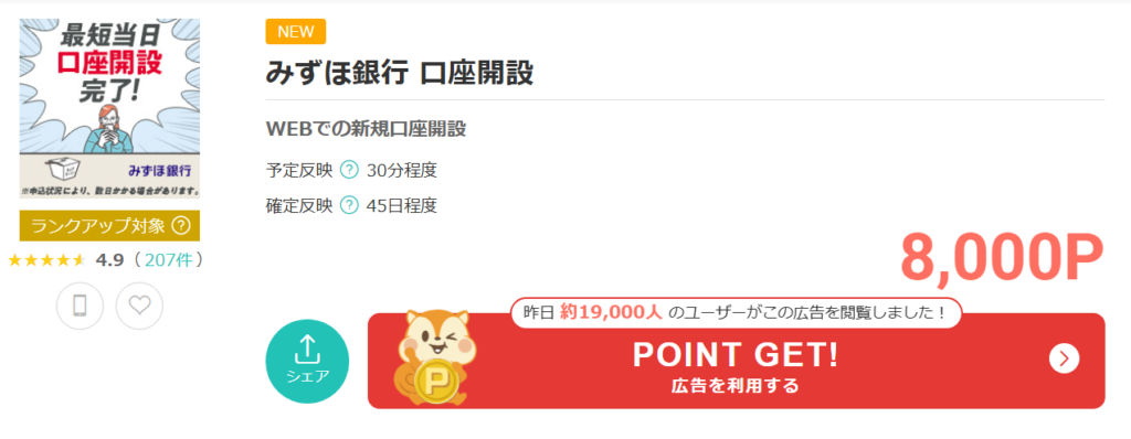 モッピーに掲載されているサービスは、モッピー経由で使うとお得であることがわかっていただけたかと思います!みずほ銀行などの超有名なサービスも掲載されていて、使える場面は非常に多いです!